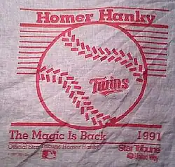 3. ^ "Twins' Homer Hanky a hit as fans root for pennant". Post-Bulletin. September 19, 1991. Retrieved April 17, 2020.
