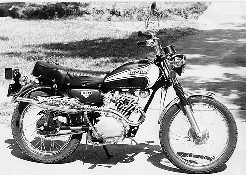 The Honda CL100 was a four stroke single cylinder overhead cam motorcycle made by Honda, and sold in the US from 1970 to 1973. The CL designation indicated this model to be the "Scrambler" or dual sport version.[1]