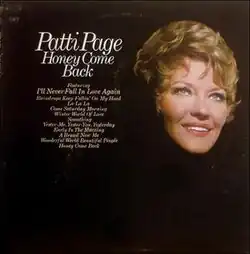 Honey Come Back is a studio album by Patti Page, released by Columbia Records. It was originally released in May 1970 as a vinyl LP.[1]