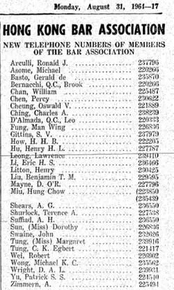 Advertisement announcing the formation of the Hong Kong Bar Association in March 1948