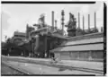 Blast furnace "A"; looking southeast; The building to the right is the crucible steel building, 1988 -