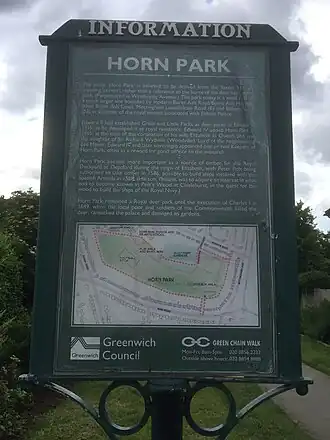 - ^ a b c d "Things to do, Horn Park". www.visitgreenwich.org.uk. Visit Greenwich. 2022-02-09. Retrieved 2022-02-09.