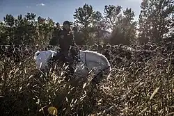 The Posavina, a cross-border breed of draft horse, is descended from the Belgian Draft and bred in Croatia and Slovenia, on the floodplains of the Save River.[32] Preservation efforts date back to the 1990s[33] and have proved effective, as the herd has steadily increased between 2006 and 2017.[34] In 2021, a total of 1 980 animals of this breed were registered.[35] The breed association was founded in 2005.[35] The Slovenian Posavina population is very similar to the Croatian population, with an average height of 1 419 cm, and a bay, dark bay, chestnut, gray or black coat.[35] In 2005, most of the Slovenian Trait breeding stallions were state-owned.[25]