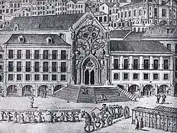 The main façade of All-Saints Hospital occupied the whole eastern side of Rossio Square. Today's Praça da Figueira (Fig Tree Square) is located over of the area occupied by the old Hospital.