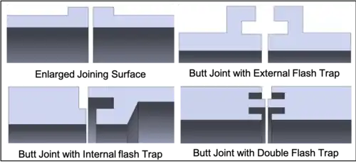 • Butt Joint Flash Trap (External) - This type of joint hides flash on the outside surface and is generally used to reduce noise in surrounding areas.
