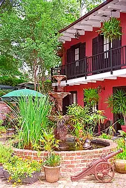 Four former slave quarters are located across the courtyard. They were built fifty years before the main building—circa 1750s—and are now used for guest accommodations. These cottages, along with the Old Ursuline Convent, are believed to be the oldest buildings in New Orleans, though research has been hampered by the loss of historical documents.