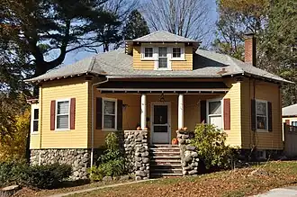 The House at 26 Francis Avenue in Wakefield, Massachusetts is a Colonial Revival octagon house. The shingle-clad wood-frame house rests on a high fieldstone foundation, is 2 stories at its rear and 1+12 in front, and has the appearance of a square house with four square sections projecting diagonally from each of its corners. The house has a Craftsman/Bungalow-style hip-roofed dormer with diamond-paned windows, and its main entrance is oriented diagonally toward the corner of Francis Avenue and Pine Street, under a porch supported by round columns.[2]