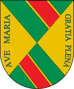 Coat of arms of the House of Lasso de la Vega (against a gold field with "Ave Maria Gratia Plena" written in blue) combined with the Arms of the House of Mendoza.