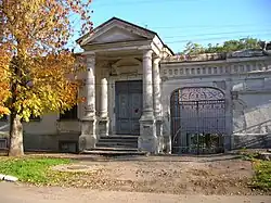 The house down the street of Schmidt, 10 in Taganrog, represents a one-story structure with the semi-basement room. It was constructed in the style of early classicism. The pediment has the triangular shape, as envisioned by the architect it is supported by 2 columns and 2 semi-columns which are created in the simplified Ionic-Corinthian style. On a trunk of a column vertical trenches – flutes are made. The entrance door is decorated with eaves of the small size with a beam pediment. Registration of a facade could be divided into three parts conditionally earlier. The central part is allocated with semi-columns with the molding located from above. Side parts of a facade of the building are framed with paired semi-columns and rectangular windows. The semi-basement floor contains windows and niches. After a reorganization of the building, some architectural details and elements were lost.[3]