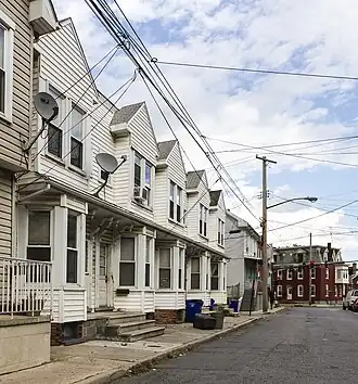 Houses At 16-22 East Lee Street is a block of historic homes located at Hagerstown, Washington County, Maryland, United States. They area group of five, 2+1⁄2-story frame rowhouses. The buildings rest on brick and stone foundations and have two inner open passageways leading from the street to the rear elevations. They are an important example of lower middle class domestic architecture in Hagerstown, erected about 1894.[2]