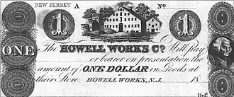 In 1831, the Howell Works secured a US Postal contract and opened its own Post Office. In the same year, the New Jersey Legislature passed an act prohibiting the use of "tickets" - in effect, banning the use of currencies other than the state's official currency. Allaire had been planning to issue his own scrip prior to passage of the act.[11] In 1832, he initiated a test case.[12]
