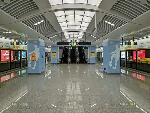 Huanglong Sports Center (simplified Chinese: 黄龙体育中心; traditional Chinese: 黃龍體育中心) is a metro station of Line 3 and Line 10 of the Hangzhou Metro in China. It is located in Xihu District of Hangzhou.[1] The part of Line 3 was opened on 21 February 2022.[2] The part of Line 10 was opened on 22 September 2022.[3]