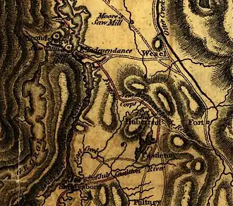 The Hubbardton Military Road was constructed in the fall of 1776 under orders from patriot Major General Horatio Gates. On July 6, 1777, most of the Continental Army's Northern Department, stationed on either side of Lake Champlain at Ticonderoga and Mount Independence, retreated on the road and were pursued by British and German troops, culminating in a rear guard action, the Battle of Hubbardton, on the morning of July 7.[2]