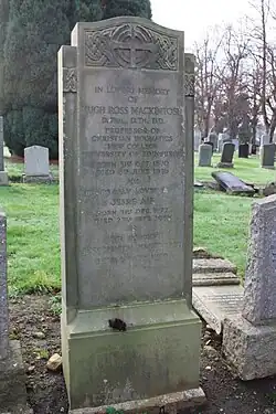 He died on 8 June 1936 and is buried with his wife, Jessie Air (1877–1951), in Morningside Cemetery, Edinburgh, towards the south-east.