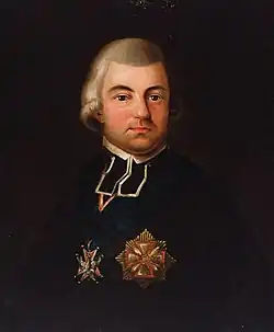 Kołłątaj co-authored the Constitution of 3 May 1791.[12] He also founded the Friends of the Constitution to assist in the document's implementation.[1] In 1786 he received the Order of Saint Stanislaus and in 1791, the Order of the White Eagle.[3] In 1791–92 he served as Crown Vice Chancellor (Podkanclerzy Koronny).[1][12]