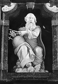 Among his works are his contributions to the monumental Waterpoort (in Antwerp),[1][2][5] a high altar in black and white marble and alabaster in the Church of Our Lady of Dendermonde;[6][7][8] and the Rubenesque marble statues of Gideon and Joshua in the Antwerp Cathedral.[9][10]