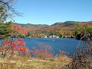The first Lakeside Inn was constructed for John W. Hall in 1877–1878 on a 1 acre (0.0040 km2) lot.[7] Although the only direct access to Huletts Landing was by ferry, a combination of train, coach, and ferry was normal for Adirondack vacationers of the period.[6][7] Huletts Hotel grew from expansions on the original farmhouse until a fire destroyed it on 14 November 1915.[7] It was hastily rebuilt for the 1916 tourist season, but questions of arson arose, and led to trial.[8] Tourism has continued to be a mainstay of the community's economy. Adirondack Park was originally established in 1892.[6] In 1931, an eastward expansion brought Lake George and its communities within park boundaries.[6]