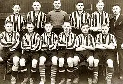 Hull City Association Football Club was founded on 28 June 1904.[6][7][8] Due to the popularity of rugby league in Kingston upon Hull, previous attempts to found an association football club in the city had proved difficult. By 1904, both Hull F.C. and Hull K.R. were already well-established sides with passionate local backing. The desire for a third team to represent the city in competitive sport was not particularly present at the time, but support would soon grow.[7] The club faced some initial disruptions after foundation, as they had been unable to apply for membership of the Football League for the 1904–05 season and instead played only in friendlies.[9] The first of these matches was a 2–2 draw with Notts County on 1 September 1904, with a crowd of 6,000 in attendance. These early matches were played at Hull F.C.'s home, the Boulevard.[3] The club's first competitive football match was in the FA Cup preliminary round, drawing 3–3 with Stockton on 17 September, but they were eliminated after losing the replay 4–1 on 22 September.[10]