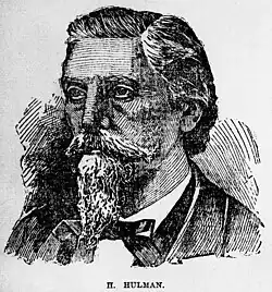 Herman Hulman conducted the business without a partner from 1879 until 1884, formally establishing the firm under the name Hulman & Company in that latter year.[4] Herman Hulman took a new generation in the persons of B. G. Cox and Anton Hulman into partnership in the firm in 1886.[3]
