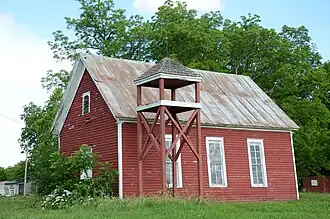 The Hulsey Bend School is a historic one-room schoolhouse building in rural southeastern Independence County, Arkansas. It is located east of Oil Trough on Freeze Bend Road, about 0.7 miles (1.1 km) north of Arkansas Highway 14. It is a single-story wood-frame structure, with a gable roof and weatherboard siding. The gabled ends each have an entrance, while the sides each have three windows. Built c. 1900, it is the best-preserved district schoolhouse in the Oil Trough area and believed to be the last in the county; it was used as a school until 1947.[2]