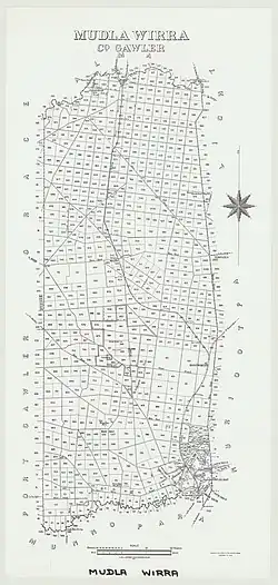 - ^ a b "Placename Details: Hundred of Mudla Wirra". Property Location Browser. Government of South Australia. 29 January 2009. SA0047381. Archived from the original on 7 December 2015. Retrieved 6 November 2017.