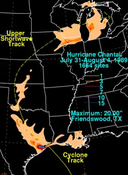 12. ^ David M. Roth (May 14, 2007). Hurricane Chantal - July 31–August 4, 1989 (Report). Hydrometeorological Prediction Center's Rainfall Archive. College Park, Maryland: Hydrometeorological Prediction Center. Retrieved January 9, 2013.