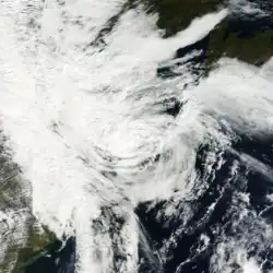 Hurricane Karen was a hurricane of non-tropical origin that formed in October of the 2001 Atlantic hurricane season. It developed out of the interaction between a cold front and an upper level trough on October 10 located to the south of Bermuda, and quickly strengthened as an extratropical storm. The storm passed near Bermuda on October 12, producing hurricane-force winds on the island. It then organized, becoming a subtropical cyclone on October 12 and a tropical cyclone on October 13. Karen strengthened to reach 80 mph (130 km/h) winds as a Category 1 hurricane on the Saffir-Simpson Hurricane Scale, and after weakening over cooler waters, it made landfall on Nova Scotia as a tropical storm. It quickly became extratropical.