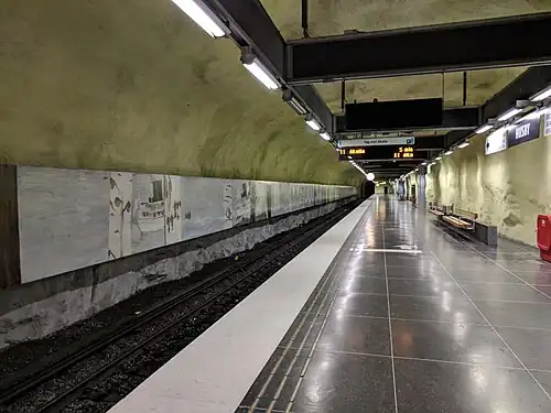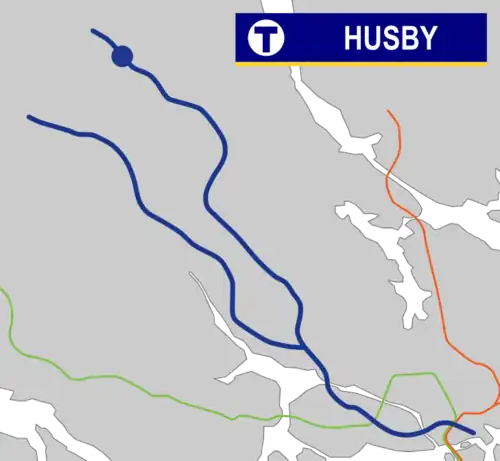 Husby is a station on the blue line of the Stockholm metro, located in the district of Husby, northern Stockholm. The station was inaugurated on 5 June 1977 as part of the extension from Hallonbergen to Akalla.[2] The distance to Kungsträdgården is 15 km (9.3 mi).