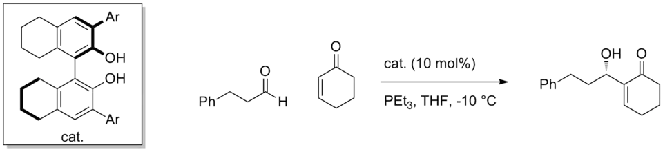 - ^ McDougal, N. T.; Shaus, S. E. (September 2003). "Asymmetric Morita−Baylis−Hillman reactions catalyzed by chiral Brønsted acids". J. Am. Chem. Soc. 125 (40): 12094–12095. Bibcode:2003JAChS.12512094M. doi:10.1021/ja037705w. PMID 14518986.