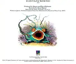 "I Can't Live with You" is a song by the British rock band Queen, which was released in 1991 as the fourth single from their fourteenth studio album Innuendo. The song was written by Brian May but credited to all four members of Queen. It was produced by Queen and David Richards. "I Can't Live with You" was released as a promotional single in the United States only, where it reached No. 28 on the Billboard Album Rock Tracks chart in June 1991.[1]