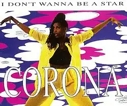 "I Don't Wanna Be a Star" is a song by Italian band Corona, released in November 1995 by DWA as the fourth and final single from their debut album, The Rhythm of the Night (1995). It was written by Francesco Bontempi, Antonia Bottari and Ivana Spagna, and was a club hit in many European countries. Unlike the previous Corona singles, it has disco sonorities.[1] The song peaked at number one in both Italy and Spain, number five in Hungary and number six in Finland. In the UK and on the Eurochart Hot 100, it peaked within the top 30. It was also Corona's last major hit. The music video for "I Don't Wanna Be a Star" was filmed on sites in Rome.