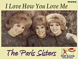- In the UK, the Paris Sisters' release of the song was overlooked in 1961, in favour of a cover by Jimmy Crawford whose version reached No. 18 in the UK Singles Chart.[9] "I Love How You Love Me" was also a UK chart hit for Maureen Evans in 1964 reaching No. 34,[10] and for Paul and Barry Ryan in 1966 at No. 21.[11]