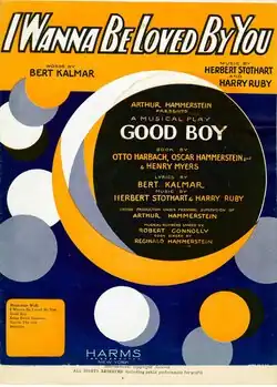 "I Wanna Be Loved by You" is a song written by Herbert Stothart and Harry Ruby, with lyrics by Bert Kalmar, for the 1928 musical Good Boy.[1] It was first performed on September 5, 1928, by Helen Kane,[2] who was the inspiration for the cartoon character Betty Boop. "I Wanna Be Loved by You" was chosen as one of the Songs of the Century in a survey by the RIAA to which 200 people responded (out of 1300 asked). One of Marilyn Monroe's most famous musical performances is her singing the song in Billy Wilder's classic 1959 farce Some Like It Hot.