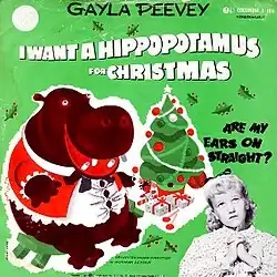 "I Want a Hippopotamus for Christmas" is a Christmas novelty song written by John Rox[1][2][3][4][5][6][7] and performed by 10-year-old Gayla Peevey in 1953. The song peaked at number 24 on Billboard magazine's pop chart in December 1953.[8]