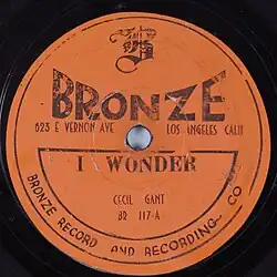 "I Wonder" is a 1944 song written and originally performed by Pvt. Cecil Gant. The original version was released on the Bronze label, before Gant re-recorded it for the Gilt-Edge label in Los Angeles. The record made it to number one on the Juke Box Race Records chart and was Pvt. Gant's most successful release.[1] In February 1945, pianist, Roosevelt Sykes hit number one with his version of the song. Sykes' version is notable in that it replaced Gant's version, at number one on the Juke Box Race Records chart.[2]