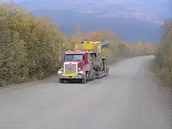 Truck traffic on the Dalton Highway in 2004.