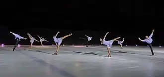 In a format developed by Olympic Champion John Curry as a class for his skating company, skaters in the group's weekly Master Edge Class focus on ensemble movement to music. This class functions much like the ballet barre in Ballet.