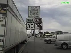 The entire highway is designated as the Pioneer Historic Byway, a National Scenic Byway following a historic pioneer route. The designation continues south on U.S. Route 91 through Preston and Franklin towards the Utah state line.[2][3]
