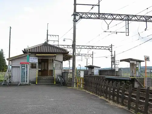 The station consists two opposed side platforms connected by a level crossing. The station is unattended and has no station building. The platform is short, and can only handle trains of two cars in length.