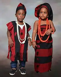 The traditional colours of the Idoma people are red and black stripes. This has only been around since the 1980s to foster a distinct Idoma identity.