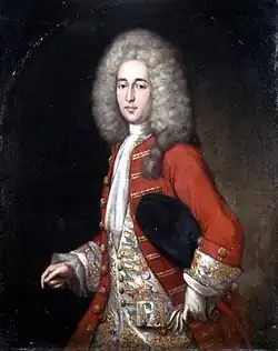 He gained loyalty from other peer aristocratic families, noting he adapted to the new sensitivity, with attention to the fashion of his subjects, styling them with "majestic and elegant drapes taking them in certain new and witty movements".[2] In 1695, by invitation of Count Morando, he completed a first journey to Parma, the city where his former master G.B. Merano was recently active. He found clients in the Farnesian cities and also in Genoa. He moved frequently among the cities of Emilia and Liguria, also painting sacred subjects. In 1705 the Cardinal Alberoni, sent by the Duke Francesco Farnese, assigned the artist, who seemed to be residing in Piacenza at that moment, to portray the Duke of Vendôme, commander of the Franco-Spanish troops. In 1706 the artist was again in Parma, commissioned to portray Duke Francesco, the Duchess Dorotea Sophia and the young Princess Elisabetta Farnese, Princess of Parma. Two years after he made the portrait of Elisabeth Christine of Brunswick-Wolfenbüttel. He also traveled a few times to Milan.