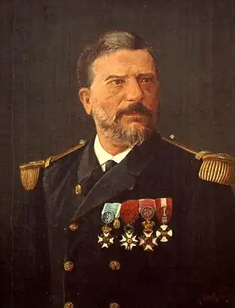In 1880, he received the Officer of the Order of the Crown of Italy due to his role in saving the Italian steamship Nuova Girona.[2] In the same year he left for Britain for studies.[2] Promoted to lieutenant commander in 1882, he was sent to Britain, France, Denmark and Germany as part of a naval committee to examine the best type of battleship for purchase by Greece.[2]