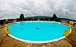 Ilkley Lido is an open-air swimming pool in the West Yorkshire, England, spa town of Ilkley, part of a complex that also includes an indoor heated swimming pool, tennis courts and cafe. It was designed by Archibald Skinner and opened in May 1935 as part of the celebrations for the Silver Jubilee of George V. The lido is open from May to September and during the summer can attract up to 4,000 visitors a day.[1] Ilkley Lido is designated Grade II listed status.[2]