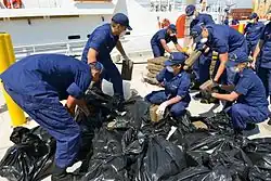 The US Coast Guard offloads seized cocaine in Miami Beach, Florida, May 2014.