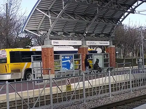 Illinois station or Illinois Avenue station is a DART light rail station in Dallas, Texas. It is located in the Oak Cliff neighborhood on Denley Drive, north of Illinois Avenue. It opened on June 14, 1996, and is a station on the DART Blue Line, serving nearby residences and businesses, featuring bus service to Mountain View College, Fair Park, the Dallas VA Medical Center, and Paul Quinn College. This was the initial southern terminus for the Blue Line until it was extended to Ledbetter in May 1997.[2]
