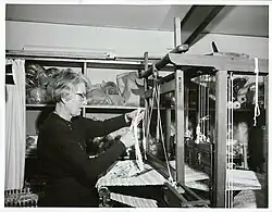 In Auckland, von Randow established herself as a leading figure in modernist craft, exhibiting widely and establishing a studio at the Auckland Art Gallery where she taught younger weavers including Zena Abbott and Ida Lough.[1][2] Her loom had been dismantled and shipped from China to New Zealand, with which she started to create hand woven wall hangings that made her famous.[3]