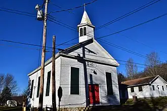 Immanuel Evangelical Lutheran Church is a historic Evangelical Lutheran church located at E Pine and N Ziegler Street in Pilot Knob, Iron County, Missouri. It was built in 1861, and is a simple, rectangular, frame building. It measures 30 feet, 7 inches, by 45 feet, 7 inches. It is sheathed in clapboard and has a gable roof topped by a hexagonal cupola with a steep, pyramidal roof and apron.[2]: 3