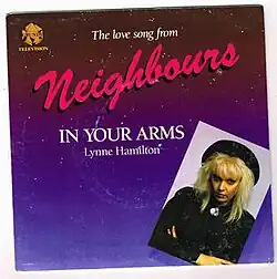 "In Your Arms (The Love Song from Neighbours)" is a song by Australian singer Lynne Hamilton. The song was used in the Australian soap opera Neighbours and it was written by the show's executive producer Don Battye and his colleague, Peter Pinne, Executive in Charge of Production. The song was released via Mushroom Records in Australia on 7" vinyl.