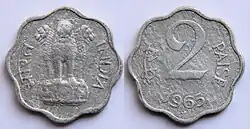 - ^ a b "2 paise coins". India Numismatics. Retrieved 21 August 2017.