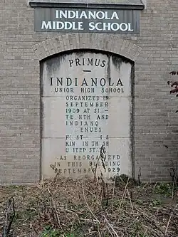 In the early 1900s, there was support for marking more of a transition from elementary to secondary education.[3] The Indianola school was the first school to be designed as a separate junior high school, incorporating what was then the last two years of elementary school with the first years of high school.[3][4]